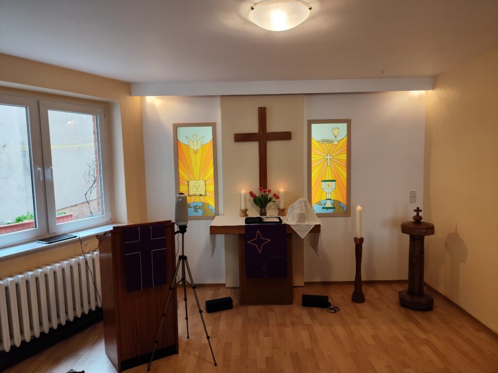 Im Zentrum von Jüterbog, einer kleinen Stadt ca. 65 km südlich von Berlin, befinden sich das Pfarrhaus und der Kirchraum unserer Gemeinde. Die Mönchenstraße führt direkt zum Markt mit dem Rathaus aus dem 13. Jahrhundert. Hier finden Gottesdienste statt, die Unterweisung der Kinder unserer Gemeinde und hier treffen wir uns wöchentlich zu unseren Bibelstunden.
